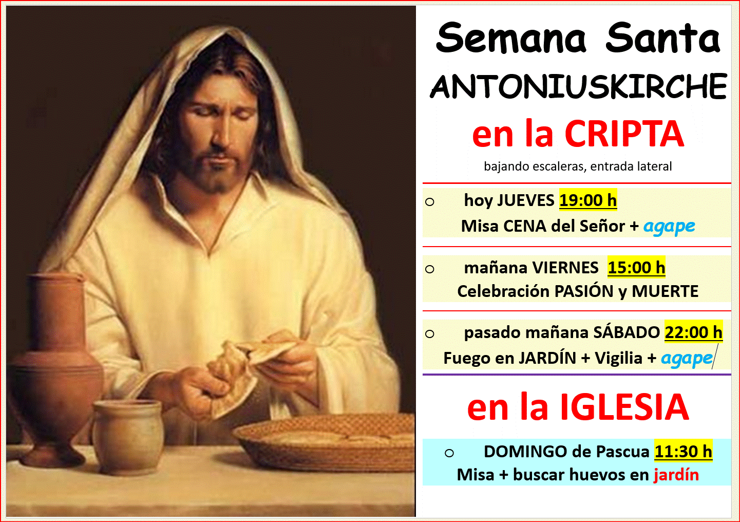 Nuestra comunidad católica de lengua española de Münster es el lugar de encuentro de los hispanohablantes de Münster y de otros muchos lugares que nos visitan... especialmente los DOMINGOS, a las 11:30 h., en Antoniuskirche (Antoniuskirchplatz 11, 48151 MÜNSTER) en nuestra EUCARISTÍA, la santa Misa.